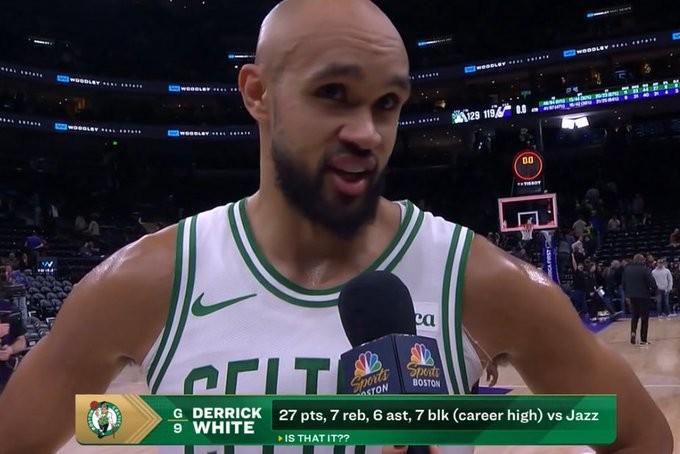 据统计,本场比赛怀特的7次盖帽创下了绿军队史后卫单场盖帽数的新高,这也是怀特个人职业生涯的单场盖帽数新高。在历史上,能在但场比赛中得到至少25分5篮板5助攻5盖帽的后卫球员只有迈克尔-乔丹和德里克-怀特。