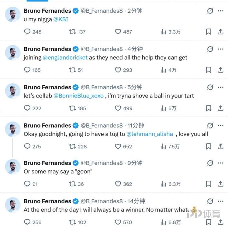 曼联在足总杯第三轮1-2不敌布莱顿,赛后曼联队长布鲁诺-费尔南德斯的社交媒体账号被盗,曼联官方随即发布公告称B费账号被盗。